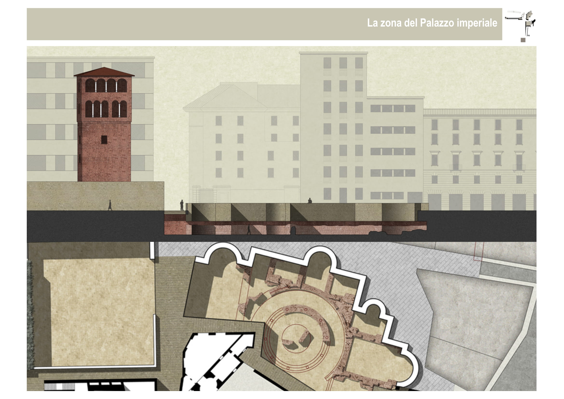La musealizzazione dell’area archeologica di via Brisa e del Palazzo imperiale, il suo ampliamento come estensione di un rinnovato Museo archeologico furono affrontati con un progetto realizzato dalla Scuola di Architettura Civile del Politecnico di Milano con la sezione di Milano di Italia Nostra negli anni antecedenti l’Expo 2015. Il progetto, ancora di grande attualità, si potrebbe inquadrare in una più vasta strategia di valorizzazione, in chiave culturale e turistica, di un percorso attraverso le vestigia di Milano capitale dell’Impero Romano: una Passeggiata archeologica di Mediolanum intesa come sistema articolato di luoghi e itinerari nel corpo della città, un grande museo en plein air, attraverso il quale verrà conferito nuovo significato ai singoli reperti, ad oggi avulsi da un’originaria e più complessa unità della quale facevano parte.