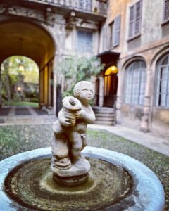 Ma l’annosa casa è ancora in piedi. Risparmiata da due guerre e dall’intelligente amore dei suoi proprietari, intatta nelle sue linee e rammodernata negli appartamenti, continua la sua vita nobile e modesta. Ai modernissimi palazzoni e alla rumorosa civiltà delle macchine e del danaro racconta, sommessamente, quanta storia d’arte e d’umanità è passata fra i suoi vecchi muri.