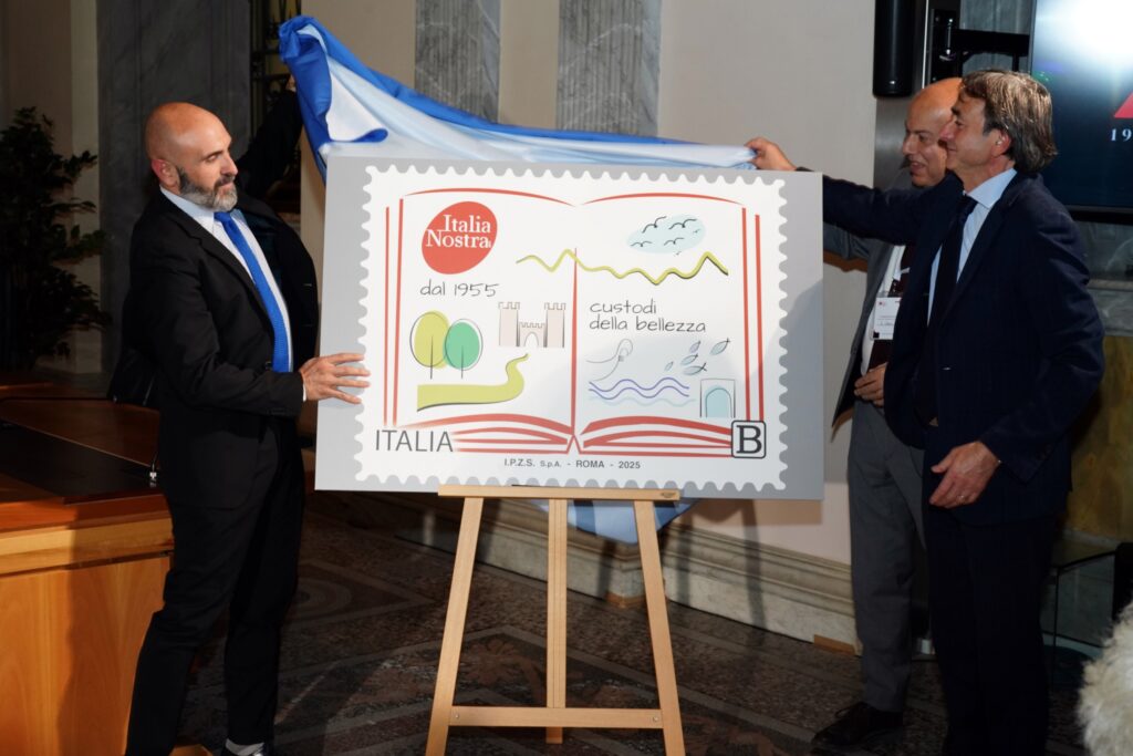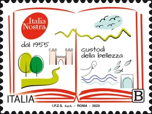 Il 29 ottobre 2025 il Ministero delle Imprese e del Made in Italy ha emesso un francobollo ordinario appartenente alla serie tematica “Le Eccellenze del patrimonio culturale italiano”, dedicato a Italia Nostra, in occasione del settantesimo anniversario della sua fondazione. La vignetta del francobollo, realizzata con una grafica stilizzata, raffigura un libro aperto sul quale si innalzano diverse architetture immerse nella natura, simbolo delle straordinarie bellezze artistiche e paesaggistiche del nostro Paese. L’Italia, da sempre considerata un vero e proprio museo a cielo aperto, vanta infatti il maggior numero di monumenti, centri storici, parchi archeologici e naturali riconosciuti come Patrimonio Mondiale dell’Umanità dall’UNESCO.