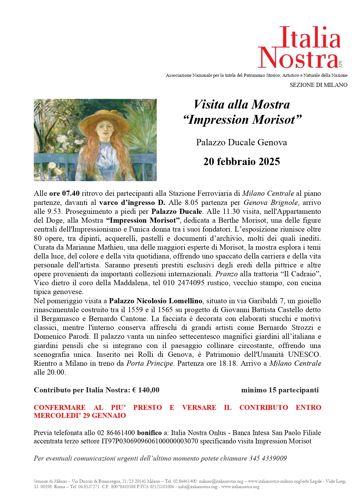 Pagina di caricamento Conferenze & viaggi Eventi Conferenze & viaggi Eventi Ricerca e viste Navigazione Cerca Inserisci Parola Chiave. Cerca Eventi per Parola Chiave. Cerca Eventi Evento Viste Navigazione Lista Lista Mese Giorno Oggi 22/01/2025 22 Gennaio - 22/03/2025 22 Marzo Seleziona la data. Gennaio 2025 Mer 22 Featured Segnalati 22 Gennaio @ 17:30 - 18:30 UTC+0 Conferenza:Tutela e recupero dei Centri Storici. Nuove strategie per le Pubbliche Amministrazioni Mar 28 Featured Segnalati 28 Gennaio @ 17:30 - 18:30 UTC+0 Conferenza: Leonardo disegna il Castello Sforzesco Febbraio 2025 Mar 4 4 Febbraio @ 17:30 - 18:30 UTC+0 Conferenza: Berthe Morisot e le donne impressioniste Mer 12 12 Febbraio @ 17:30 - 19:00 UTC+0 Conferenza: Riuso e Restauro nelle società antiche Gio 13 Featured Segnalati 13 Febbraio @ 18:00 - 19:00 UTC+0 Visita alla Veneranda Fabbrica del Duomo. Restauro Fondo Monti Mar 18 Featured Segnalati 18 Febbraio @ 17:00 UTC+0 Conferenza: Meravigliose chiese romaniche in un paesaggio intatto Gio 20 20 Febbraio @ 7:30 - 17:00 UTC+0 Visita alla Mostra “Impression Morisot” Palazzo Ducale Genova Mar 25 Featured Segnalati 25 Febbraio @ 17:00 UTC+0 Conferenza: Lontano da Versailles: storia, arte e tradizioni alverniati dal XV al XX secolo Marzo 2025 Mer 12 12 Marzo @ 17:30 - 19:00 UTC+0 Conferenza: Manutenzione e Restauro nella trattatistica rinascimentale Mar 18 Featured Segnalati 18 Marzo @ 15:00 - 17:00 UTC+0 Visita al Museo Mangini Bonomi Precedente Eventi Oggi Prossimo Eventi Iscriviti al calendario Google Calendar iCalendar Outlook 365 Outlook Live Esporta il file .ics Esporta file .ics di Outlook