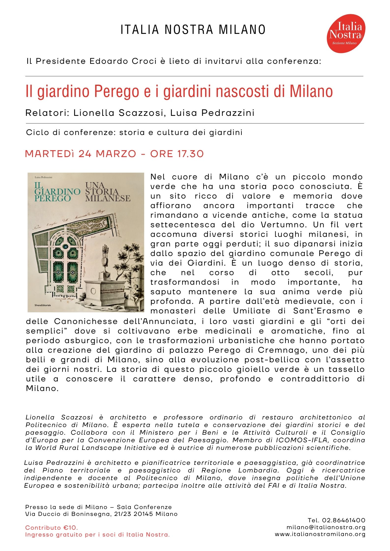 17:30 Conferenza “Il giardino Perego e i giardini nascosti di Milano” 24 Marzo @ 17:30 UTC+0 Conferenza “Il giardino Perego e i giardini nascosti di Milano”